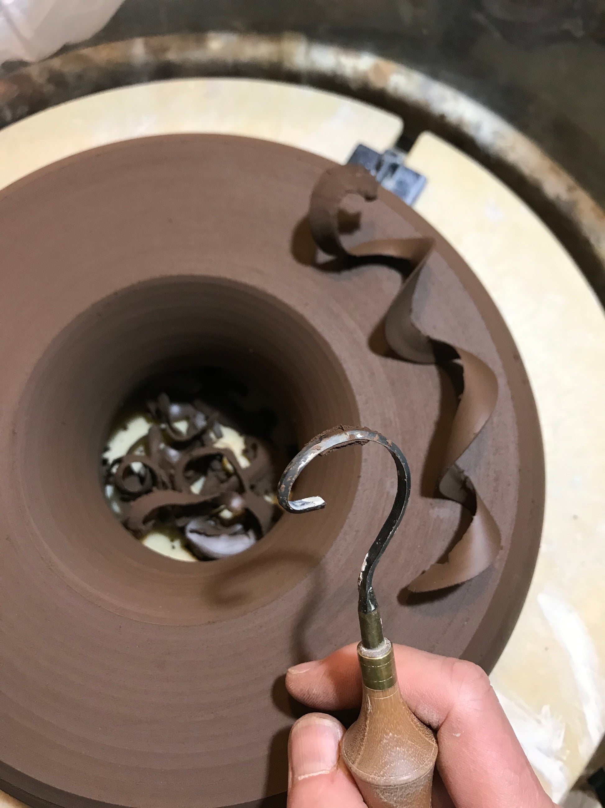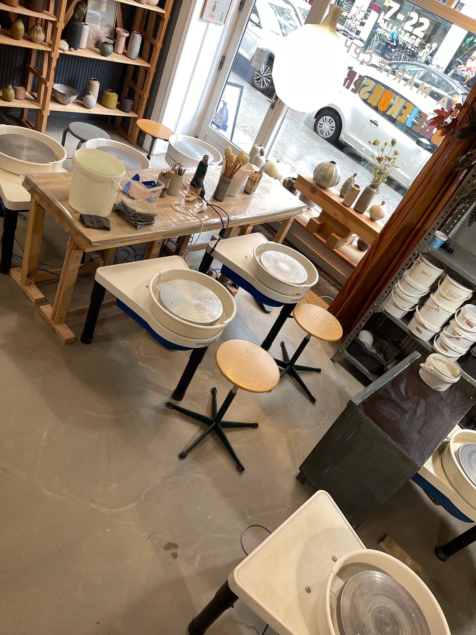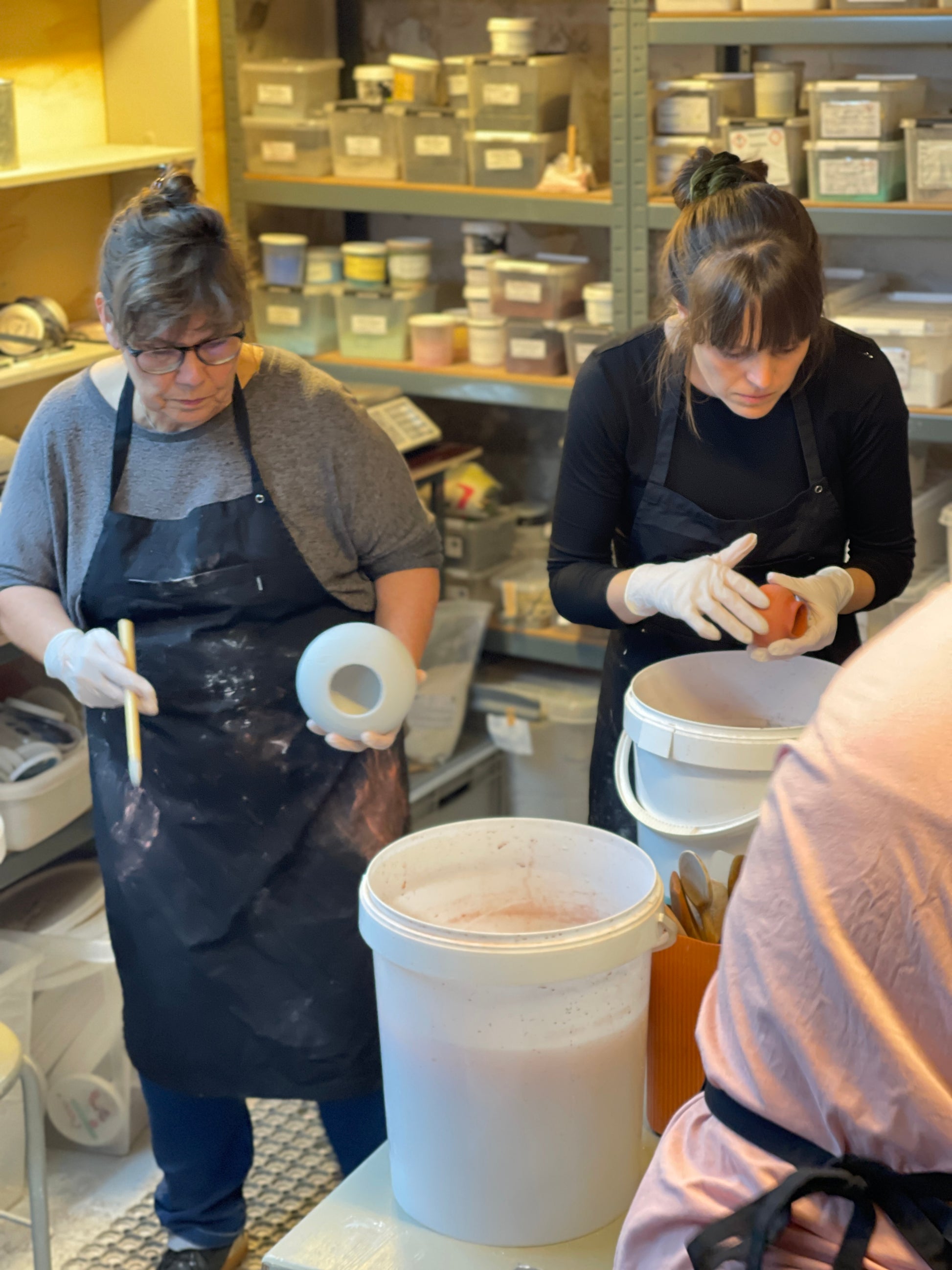 Cleaning is a given in a ceramics workshop. That's why we stop about 1/2 hour before to get everything cleaned and tidied up together. Everyone helps each other.